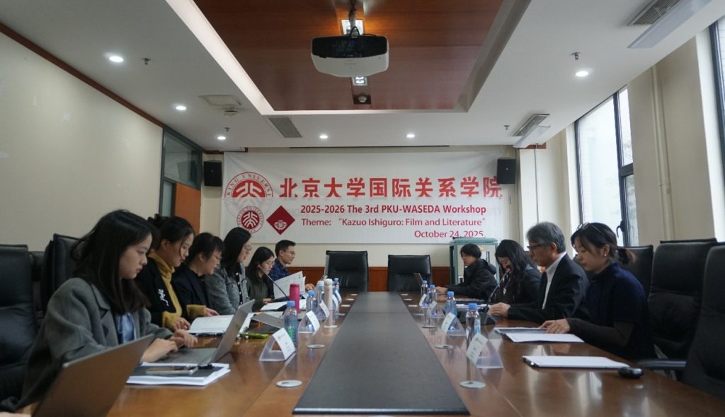 2025年10月24日,2025-2026年第三期北大-早大合作研究交流会在北京大学国际关系学院成功举行。会议主题为“石黑一雄:电影与文学”。早稻田大学国际文化与传播研究科教授吉本光宏,北京大学外国语学院日语系副教授翁家慧,北京大学外国语学院日语系博雅博士后徐一然,以及两校的十余名师生参加了交流会。师生围绕文学的跨媒介改编、翻译文化、历史叙事的重构、创伤记忆的跨代际传承等议题展开交流和讨论。